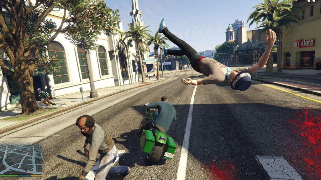 Rockstar’s attention to detail is legendary. Whether you are cruising down the highway at sunset, flying a helicopter across the mountains, or simply wandering through the streets, the environment feels like a living, breathing city rather than just a digital map.